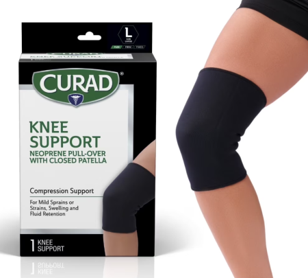 L or XL only. Best Seller. Walmart with Medline has the CURAD Neoprene Pull-Over Knee Support with Closed Patella for $3.99 with free shipping with Walmart+ (30-day trial) or on $35+. Useful for mild knee sprains or strains, swelling and fluid retention.